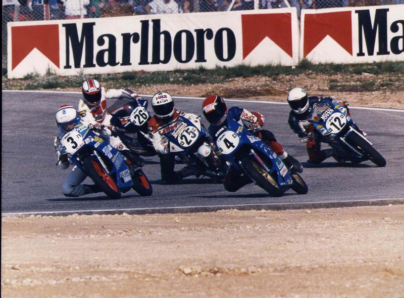 La primera cita del criterium del 89´ en Calafat. Mi mejor mecánico: Joaquín Salas, de Córdoba. Delante mio se ve a Jorge Calabuig con una TZR con el numero 7 y más adelante Joan Puig, hijo del famoso fabricante de escapes TAVI, con el numero 4, con una Aprilia.